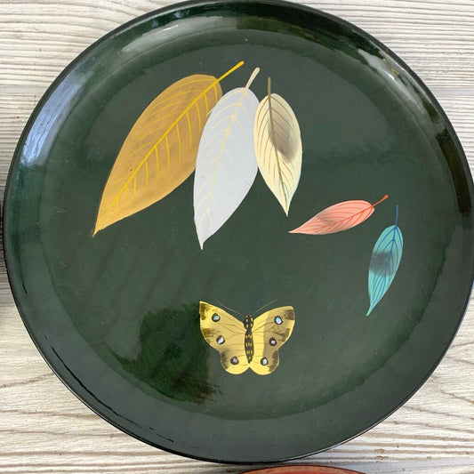 Vintage Mid-Century Enesco Lacquerware Leaf and Butterfly Plates/Trays Set/4, Made in Japan /cb