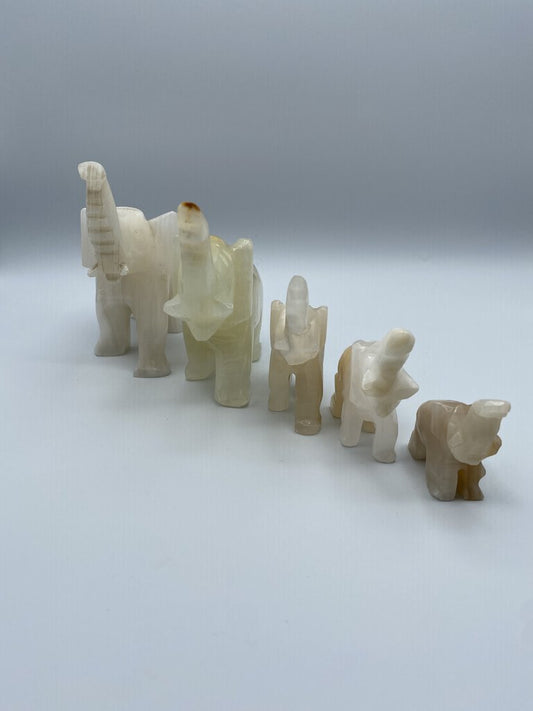 VTG. Carved Marbled Onyx Stone Elephants Lot of 5 Trunks Up /ro
