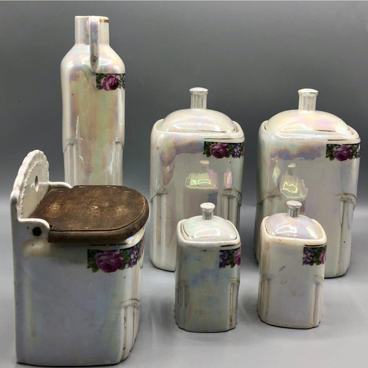 Antique Lusterware Germany Iridescent Floral Canister Set Farmhouse Kitchen /b