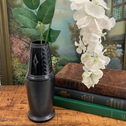 Vintage 1930s Art Deco Black Glass Vase, Made in Czechoslovakia /cb