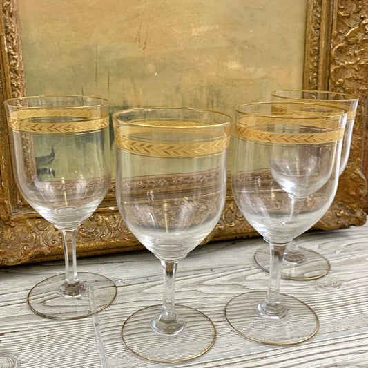 Vintage Crystal Gold Gilded Wine Glasses Set/4 /cb