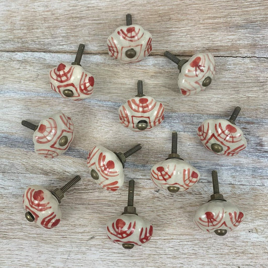 Set Of 11 Unique Vintage Hand-painted Ceramic Knobs /cb