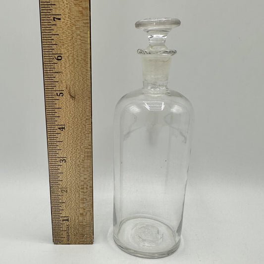 Antique Clear Mouth Blown Glass Apothecary Pharmacy Bottle w/Ground Stopper /cb