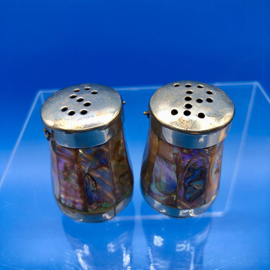 Vintage Mexico Abalone Shell Salt & Pepper Shaker Set /b