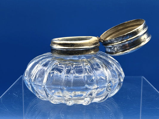 Vintage Silver Plate Melon Shaped Glass Inkwell /b
