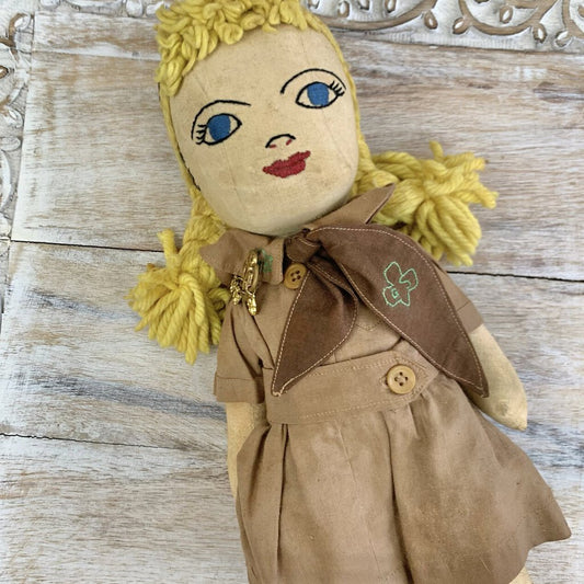 Vintage Hand Embroidered Cloth And Yarn Brownie Doll /cb