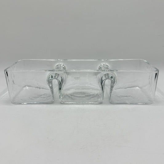 Vintage Krosno Poland Art Glass Clear Rectangular Divided Candy Nut Relish Dish /cb