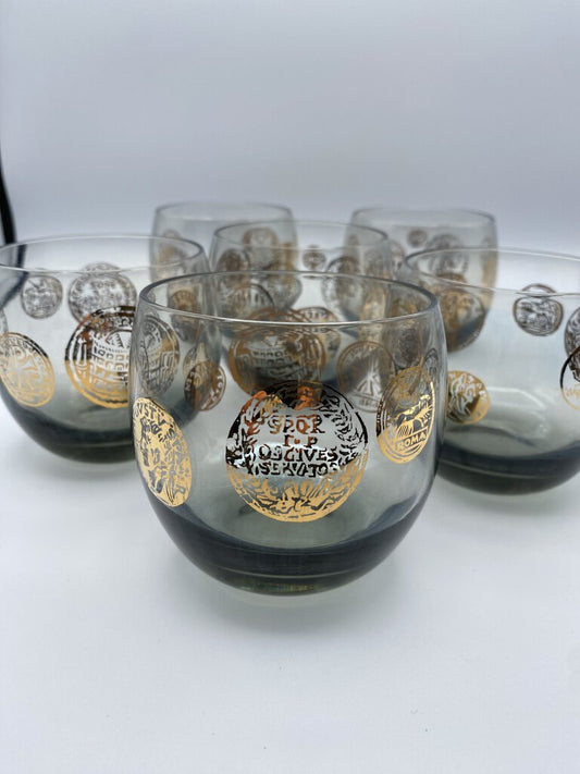 MCM Federal Glass Roma Coin Roly Poly Cocktail Glasses set of 6 /ro