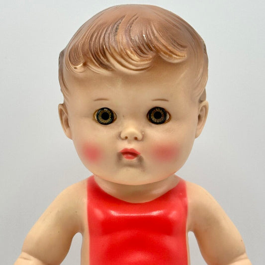Vintage 1956 The Sun Rubber Company 10” Doll w/Red Molded Outfit & Shoes /cb