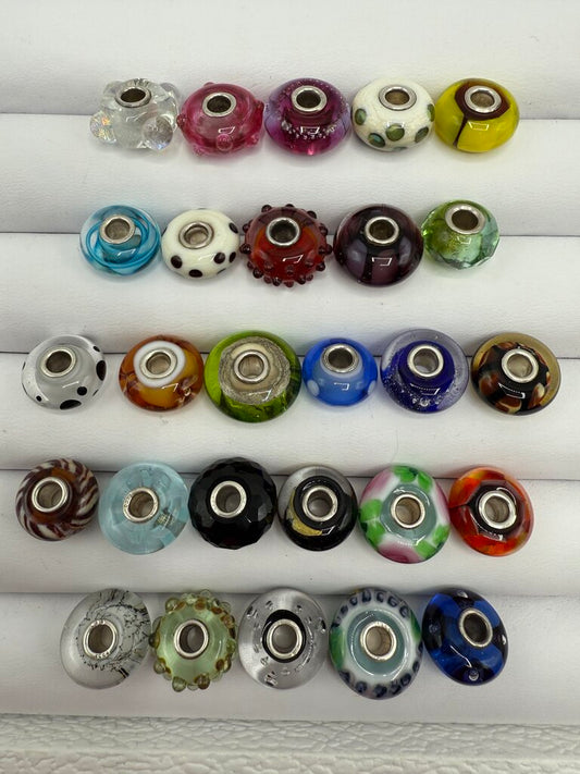Estate lot of 28 Murano Glass Style Beads Metal Center /ro