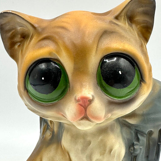 Vintage Enesco 1960s Big Sad Eyed Cat Planter-Keane Style Kitsch-Made In Japan /cb
