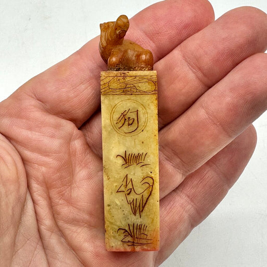 Vintage Chinese Carved Soapstone Seal Stamp Set “Carole” In Decorative Box /cb