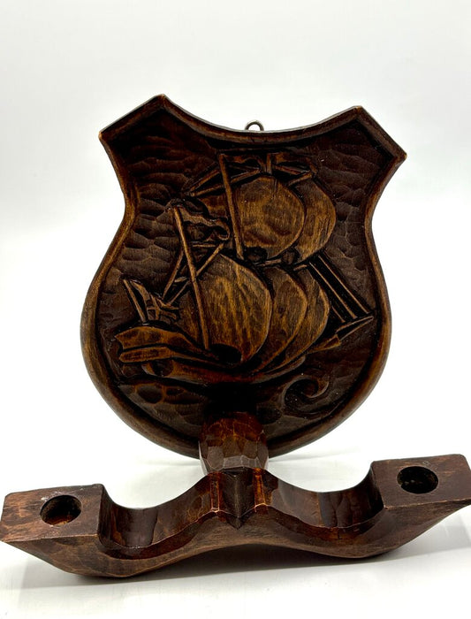 Vtg. Pair of Hand Carved Wooden Candle Sconce Nautical Theme /j