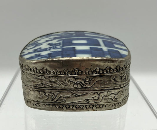 Handmade Tin Box w/ Asian Porcelain Pottery Lid /b