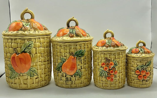 Vintage 1960’s Lefton Fruit & Basket Weave 4pc Canister Set 5254 /b