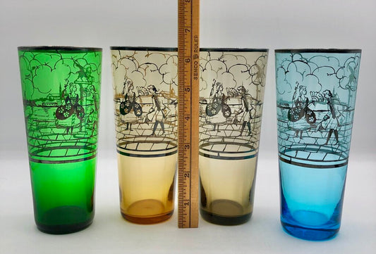 Set of 4 MCM Venetian Silver Overlay Tom Collins Barware Glasses /b