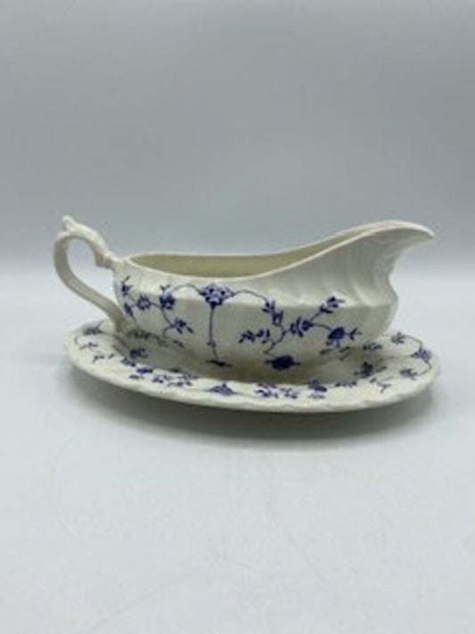Myott Finlandia Fine Staffordshire Ware England Blue/White Gravy Boat w/Underplate /roh