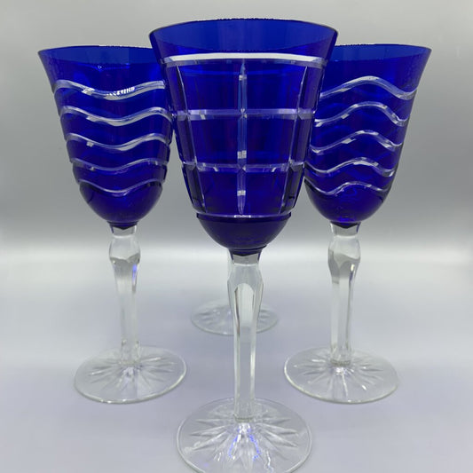 Stunning Cobalt Cut to Clear Water/Wine Goblets /hge