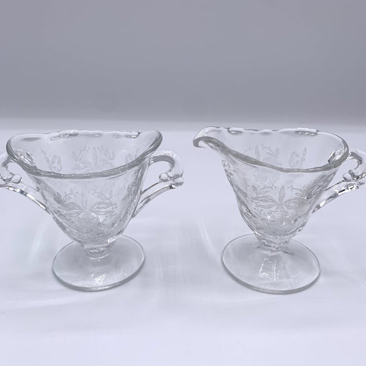 Vintage HEISEY “Orchid” Miniature Etched Glass Sugar Bowl and Creamer Set /hgo