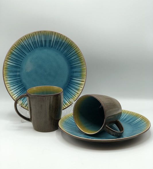 Gibson Cressa Turquoise 8 1/2” Plate w/ Mug Set of 2 /b