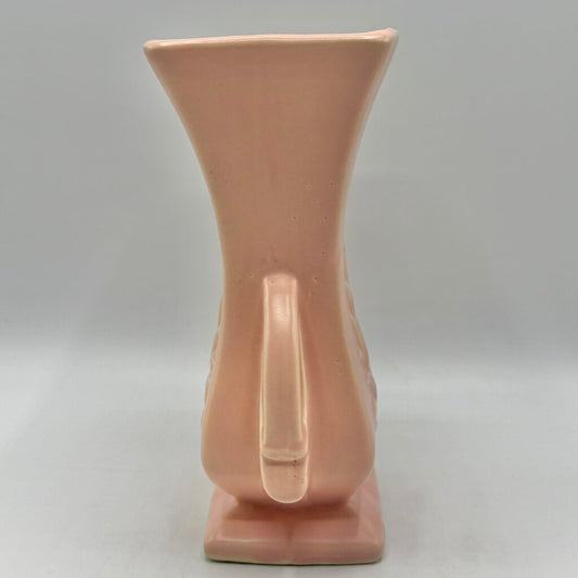 Vintage 1940s McCoy Pottery Pink Double Handled 8 Inch Vase Leaf Design /cb