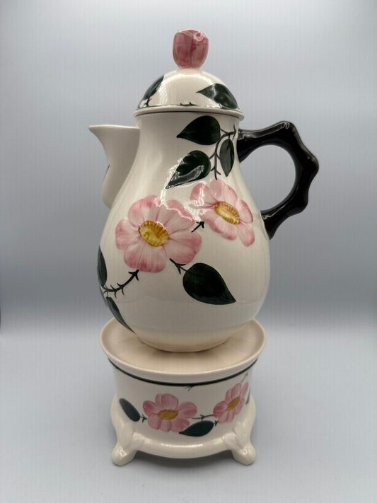 Villeroy & Boch Coffee Pot, Lid & Warmer Stand Wild Rose Pattern /roh