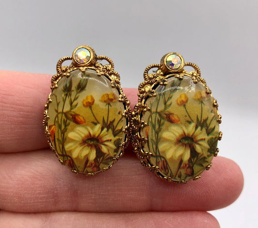 Vintage West Germanay Floral & Filigree Clip Earrings /b