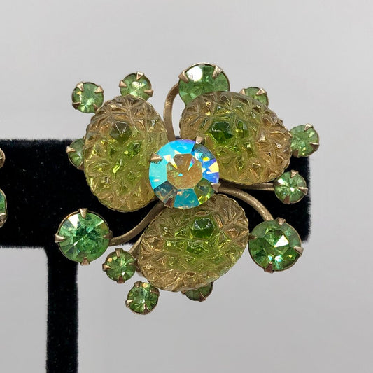 1960s Judy Lee LAva Glass & Rhinestone Clip Earrings /b