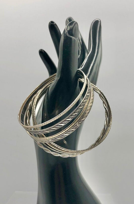 Vintage Bundle of 8 Bohemian Bangle Bracelets Silver Tone /b