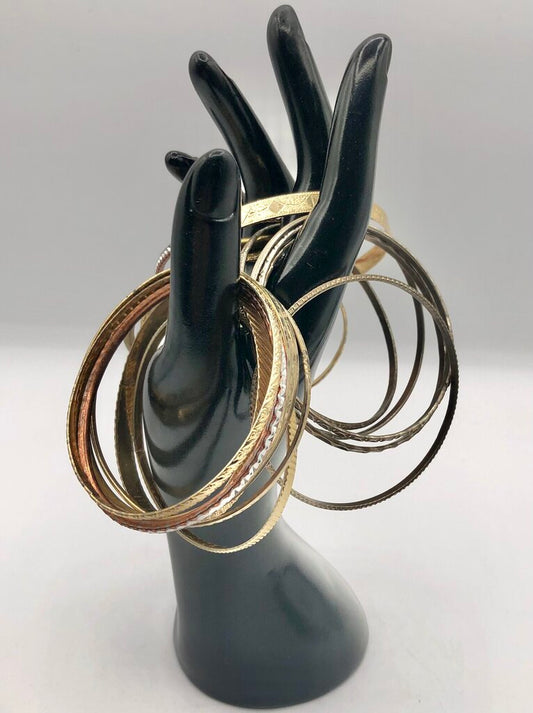 Vintage Bundle of 12 Bohemian Bangle Bracelets Gold Tone /b