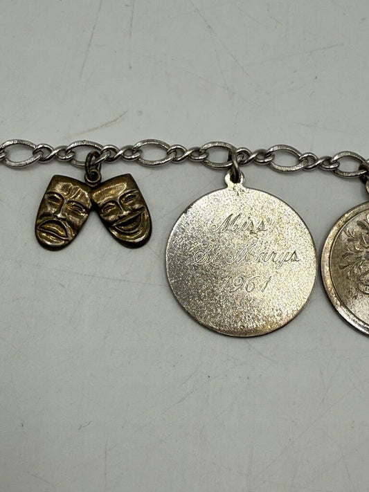 Vintage Sterling Silver Charm Bracelet Figaro Link 7” /ro