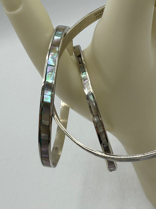 Vintage Trio of Mexican Sterling Silver Bangle Bracelets w/Inlaid Abalone Shell /ro