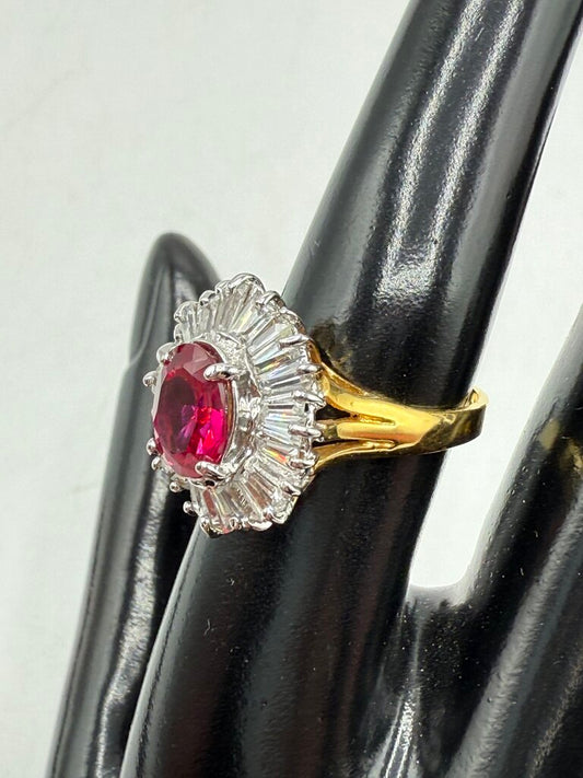 VTG 925 Gold Vermeil Ring w/Crystal stones Size 8.25 /ro