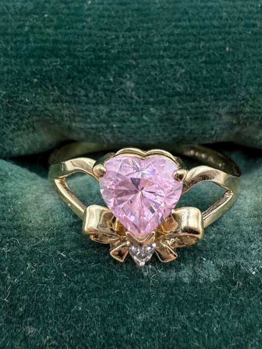 VTG Heart Shape Pink Gemstone Ring 10Kt Pendant 14Kt Pierced Earrings /ro