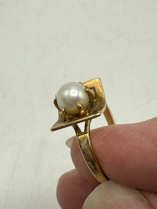 Vintage Yellow Gold 10KT Pearl Ring Size 7.5 /ro