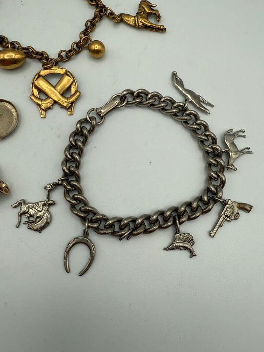 3 Vintage Costume Jewelry Charm Bracelet Western Theme /ro