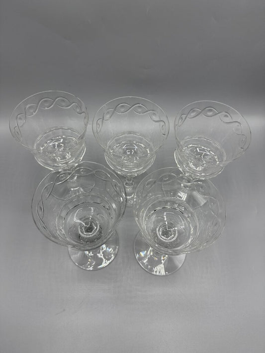 Libbey Rock Sharpe Crystal Etched Floral Champagne Glasses/Tall Sherbet set of 7 /rw