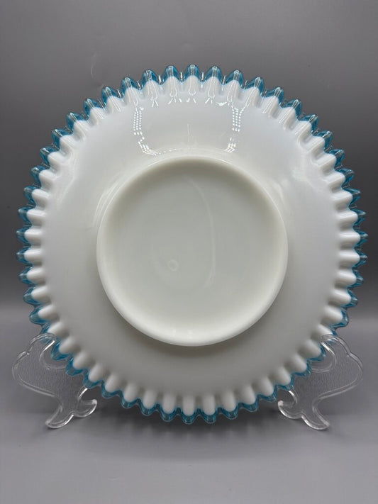 VTG Fenton Aqua Crest Milk Glass Ruffled Edge Platter Cake Plate /rb
