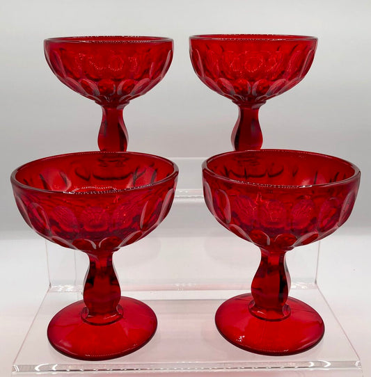 Set of 4 Fenton Thumbprint Ruby Red Champagne/ Sherbet Glasses /b