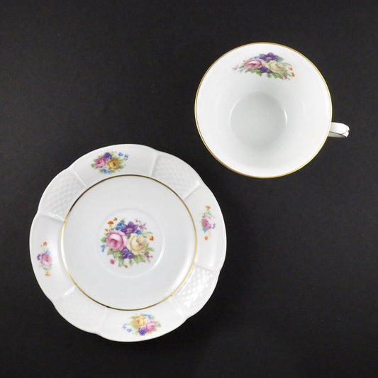 Vintage 1926 1927 ROSENTHAL 136 Bavaria Rose Floral Basket Weave Cup & Saucer /g