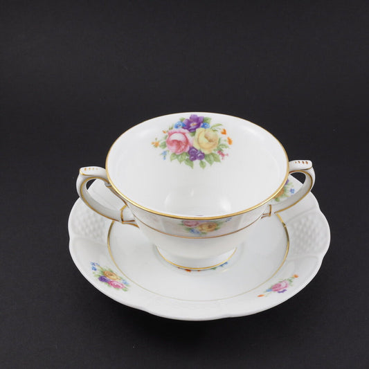 1926 1927 ROSENTHAL 136 Bavaria Rose Floral Basket Weave Cream Soup & Saucer /g