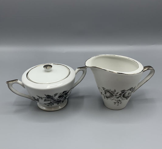 Mid-Century Hutschenreuther “Black Rose” Sugar Bowl and Creamer /hg