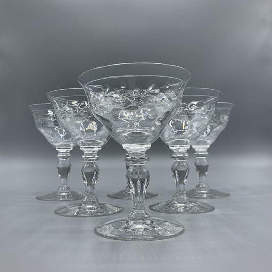 Vintage Hawkes “Sylvia” Cut Crystal Coupe Glasses Set/6 /hg