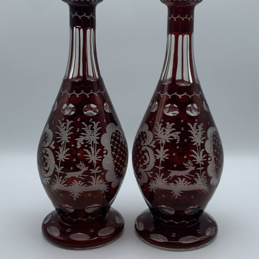 Pair of Antique Egermann Ruby Red Bohemian Glass Decanters /hg