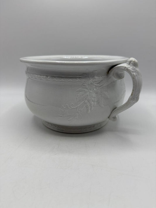 VTG White Ironstone Chamber Pot Grapevine Motif France /ro