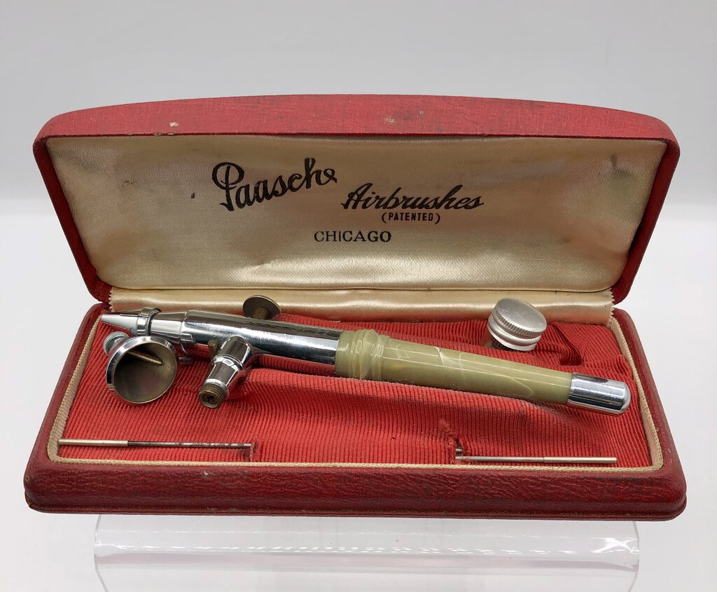 Paasche Airbrush of Chicago has a bakelite handle, assorted accessories and original case in very nice condition.