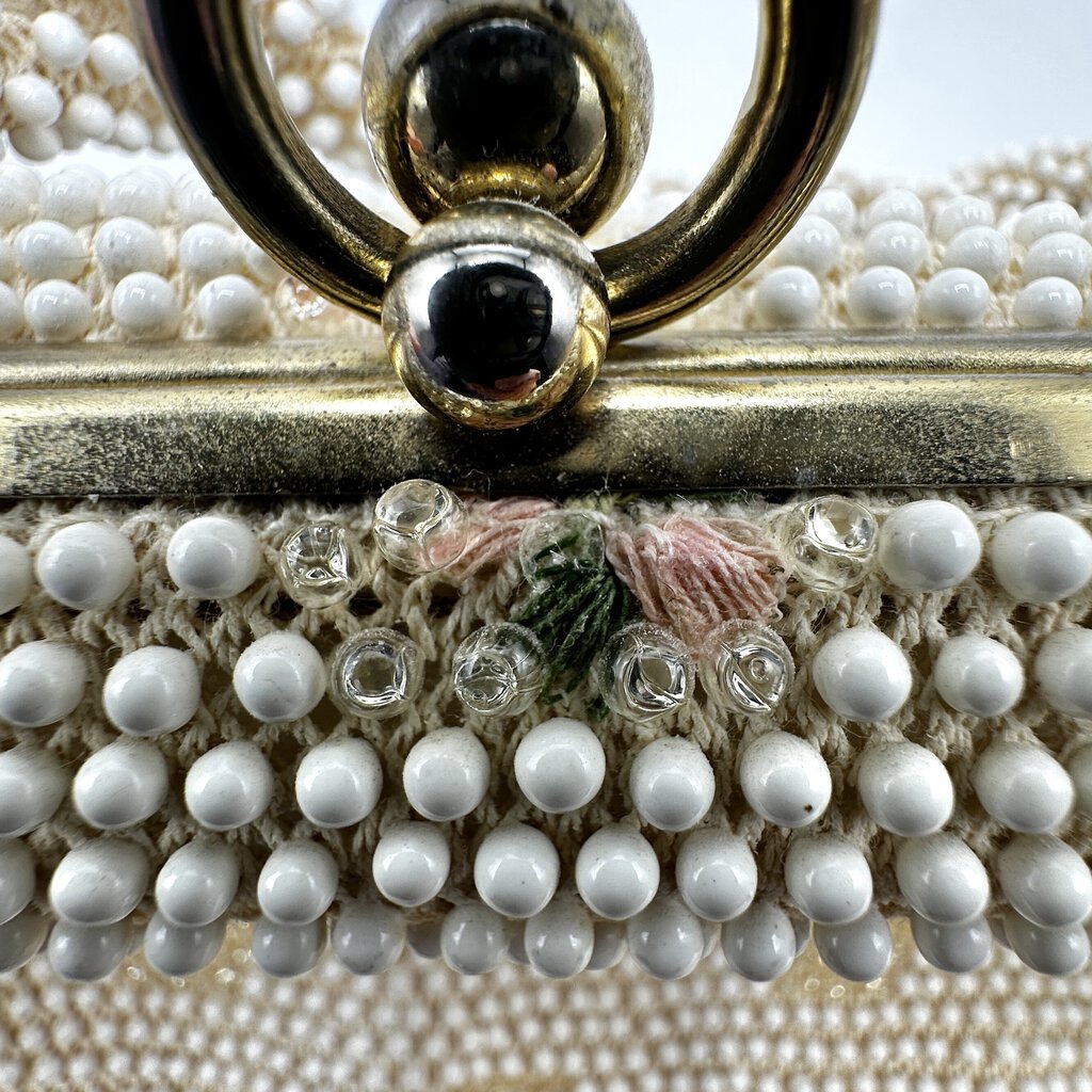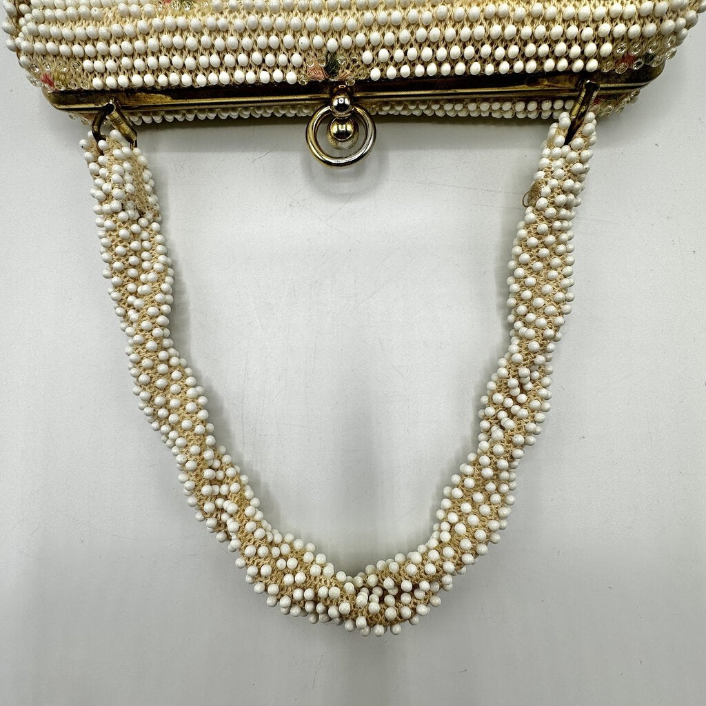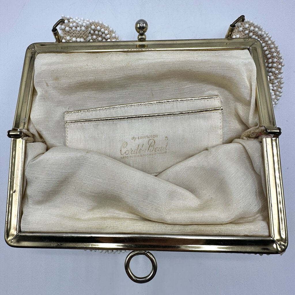 1950s Cordé Bead by Lumured Ivory Floral Beaded Evening Purse/Handbag /cb