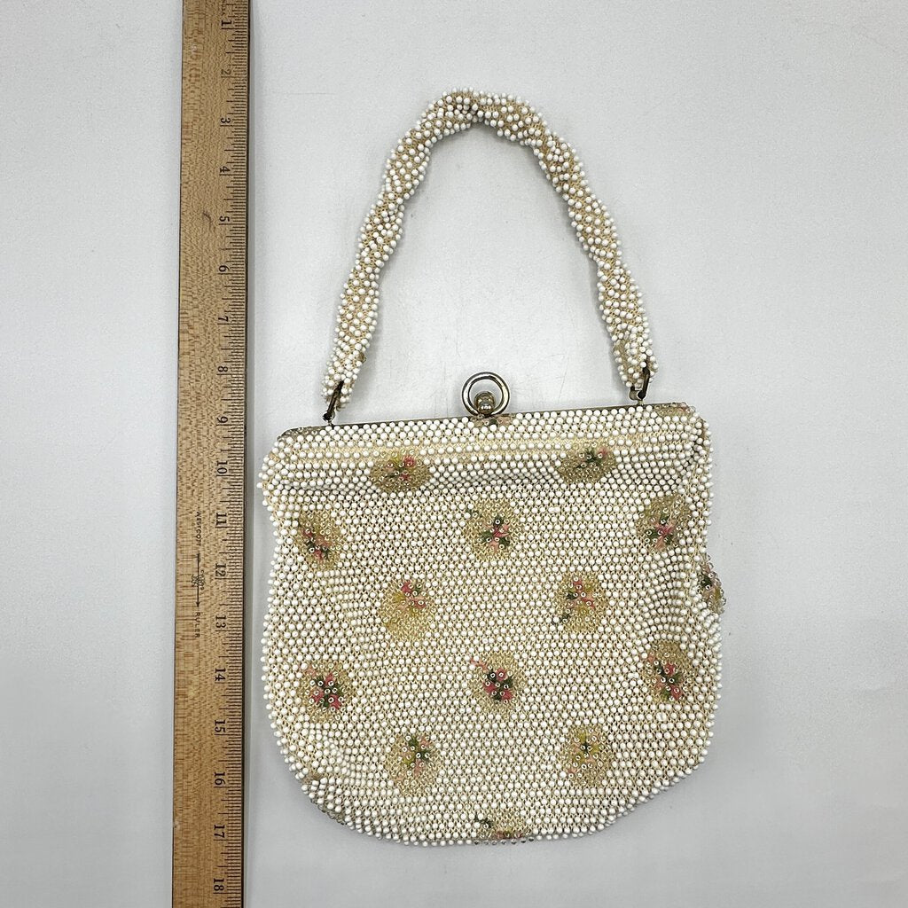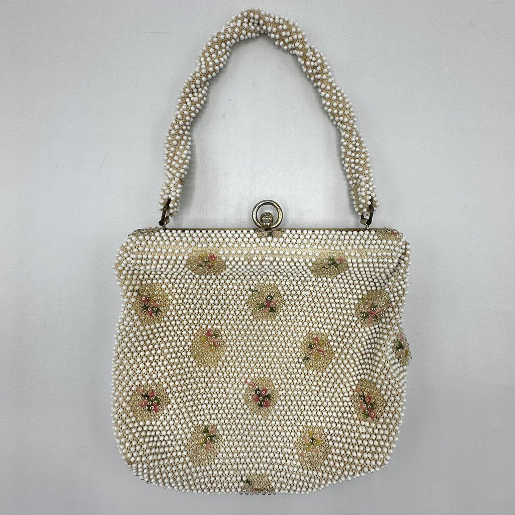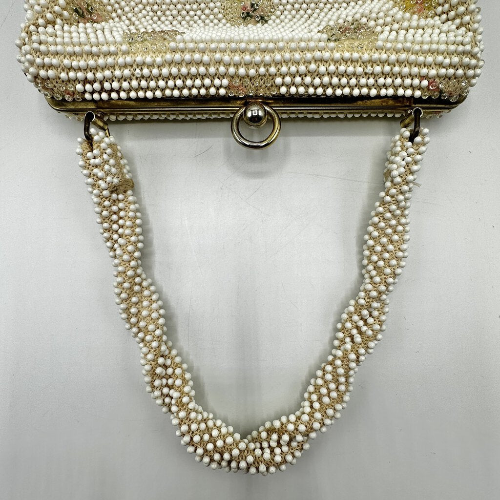 1950s Cordé Bead by Lumured Ivory Floral Beaded Evening Purse/Handbag /cb
