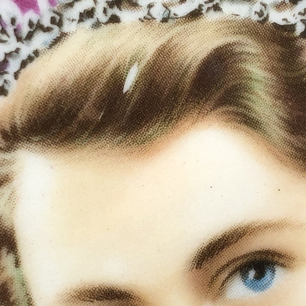 There is a small flea bite in the hair of the Queen which is displayed in photos.