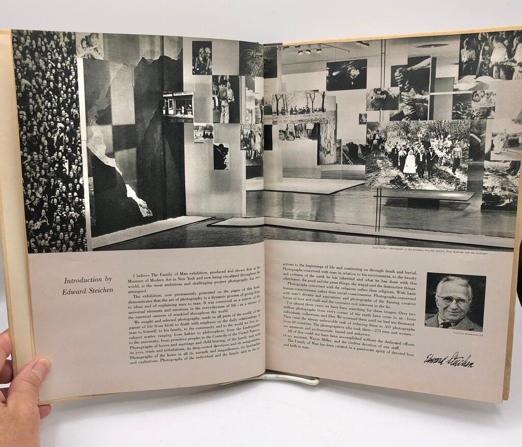 1955 The Family of Man: The greatest photographic exhibition of all time - 503 pictures from 68 countries - created by Edward Steichen for The Museum of Modern Art. Prologue by Carl Sandburg.
